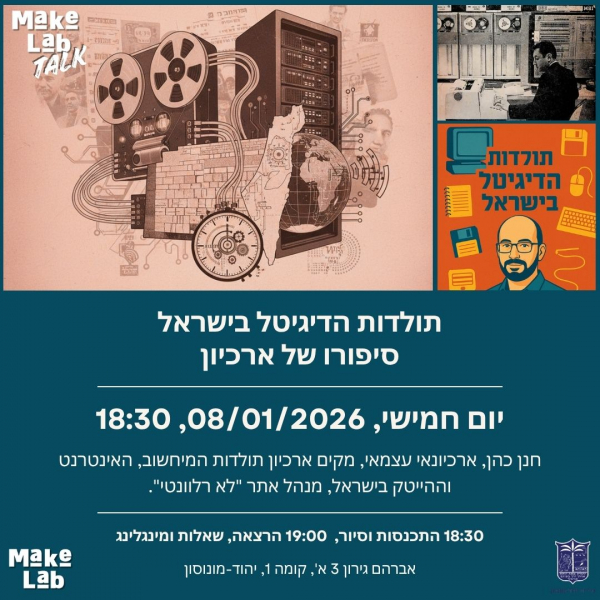 מרכז החדשנות MakeLab מזמין אתכם למינגלינג, בירה והרצאה במסגרת MakeLabTalk: תולדות הדיגיטל בישראל – סיפורו של ארכיון.